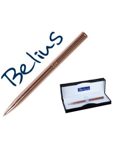 BOLIGRAFO BELIUS CASCAIS ORO ROSA CUERPO CROMADO BRILLO EN ESTUCHE