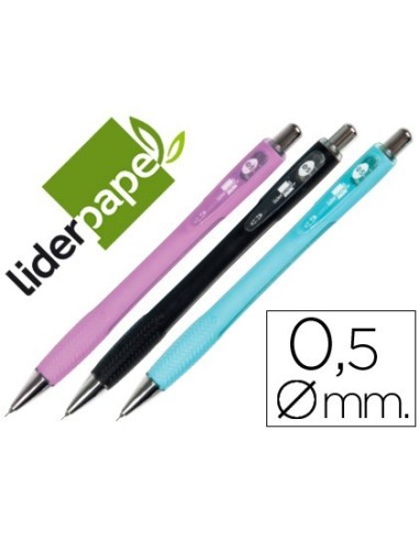 PORTAMINAS LIDERPAPEL SHAKER 0,5 MM CON GOMA SUJECION SOFT Y PUNTA RETRACTIL COLORES SURTIDOS