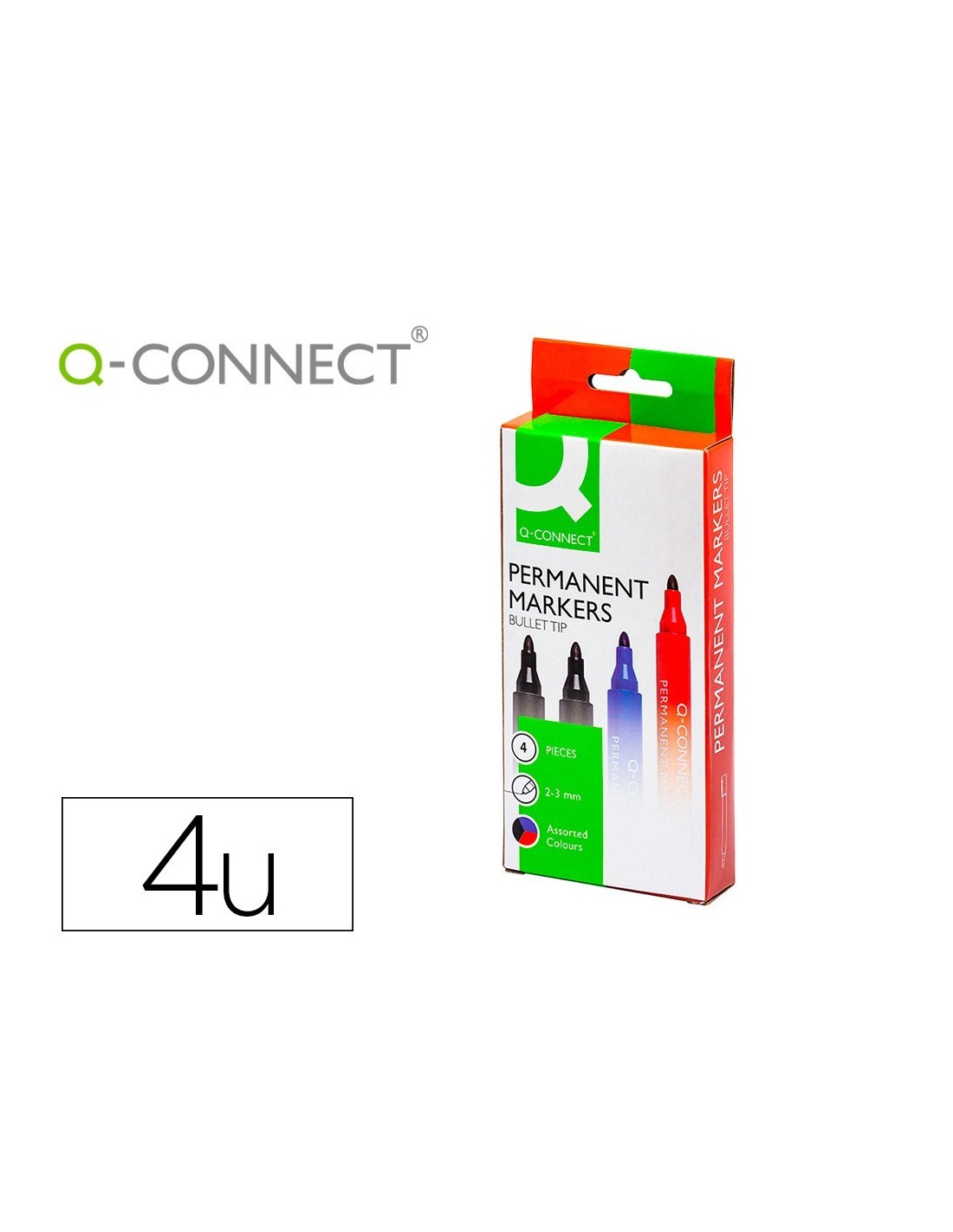 ROTULADOR Q-CONNECT MARCADOR PERMANENTE ESTUCHE DE 4 COLORES SURTIDOS PUNTA REDONDA 3.0 MM