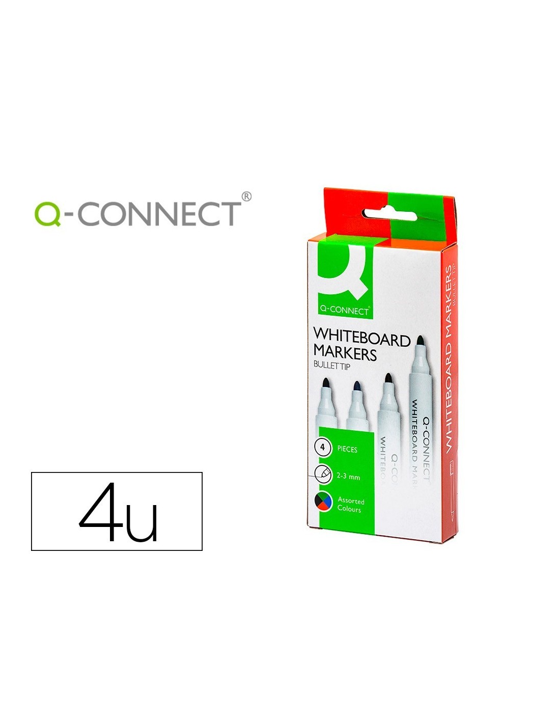 ROTULADOR Q-CONNECT PIZARRA BLANCA 4 COLORES SURTIDOS PUNTA REDONDA 3.0 MM