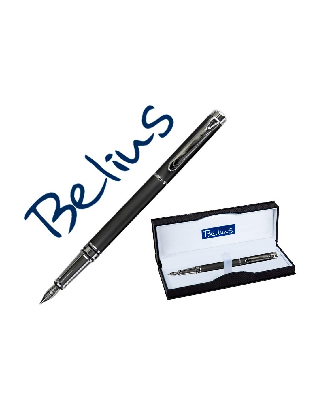 PLUMA BELIUS NUREMBERG GRIS OSCURO TINTA AZUL EN ESTUCHE