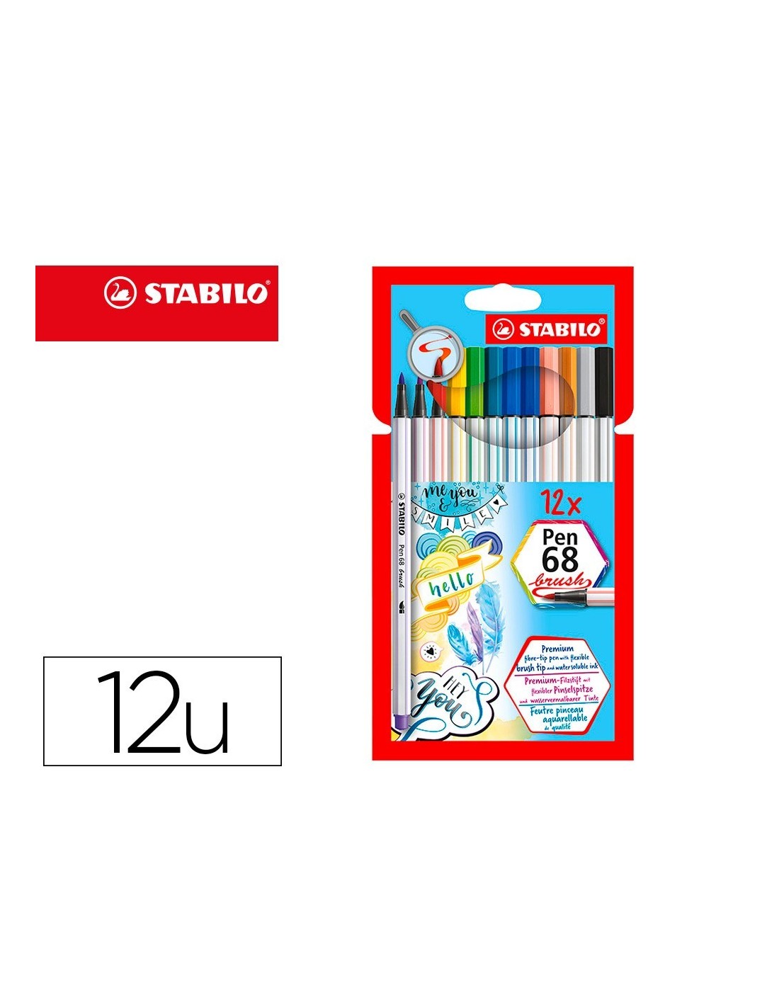 ROTULADOR STABILO ACUARELABLE PEN 68 BRUSH PUNTA PINCEL ESTUCHE DE 12 UNIDADES COLORES SURTIDOS