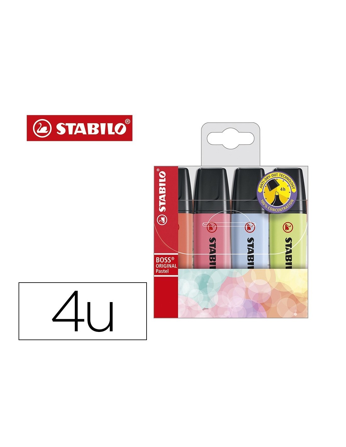 ROTULADOR STABILO BOSS FLUORESCENTE 70 PASTEL ESTUCHE DE 4 UNIDADES COLORES SURTIDOS