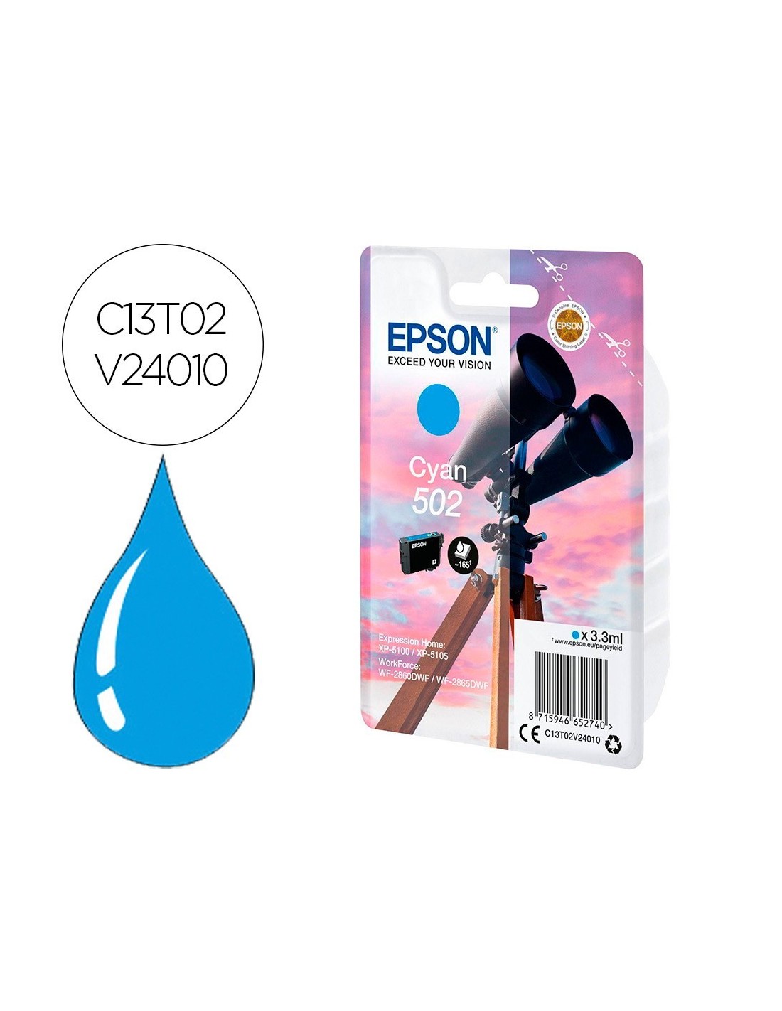 INK-JET EPSON SINGLEPACK CIAN 502 INK Ver en Cátalogo Pag .