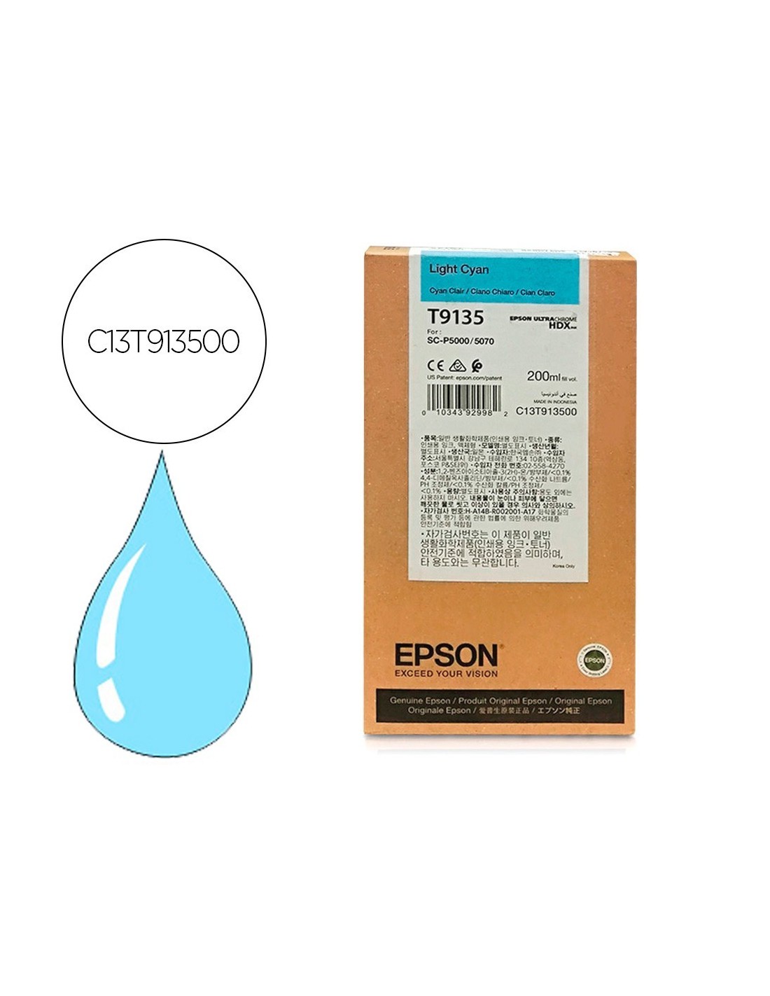 INK-JET EPSON T9135 LIGHT CIAN INK 200ML Ver en Cátalogo Pag .