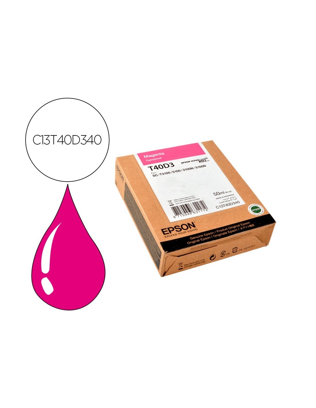 INK-JET EPSON ULTRACHROME ORIG XD2 MAGEN T40D340 SC-T3100 / Ver en Cátalogo Pag .