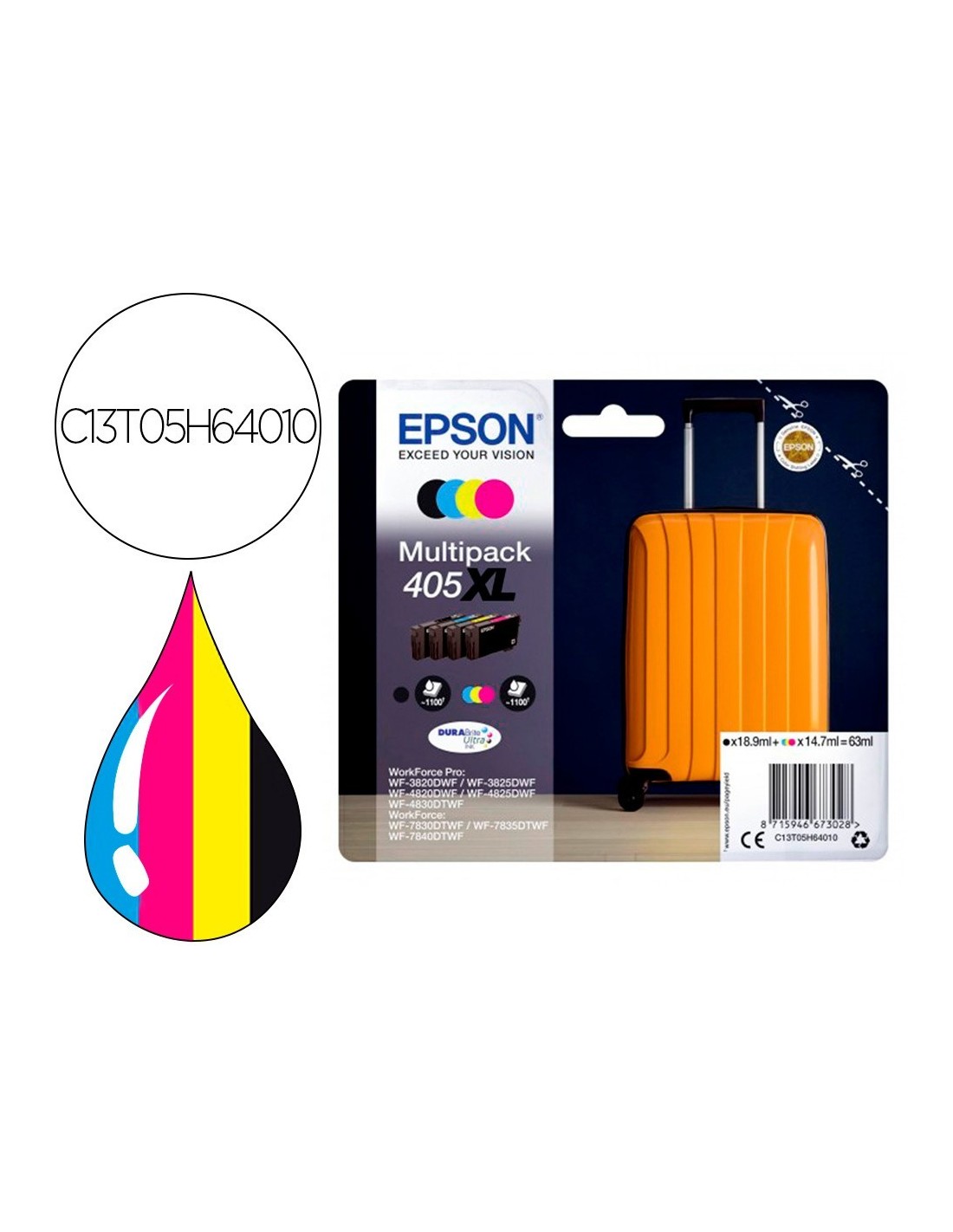 INK-JET EPSON 405 XL WF-3820DWF / WF-4820DWF / WF-7830DTWF / WF-7840DTWF ALTA CAPACIDAD PACK DE 4