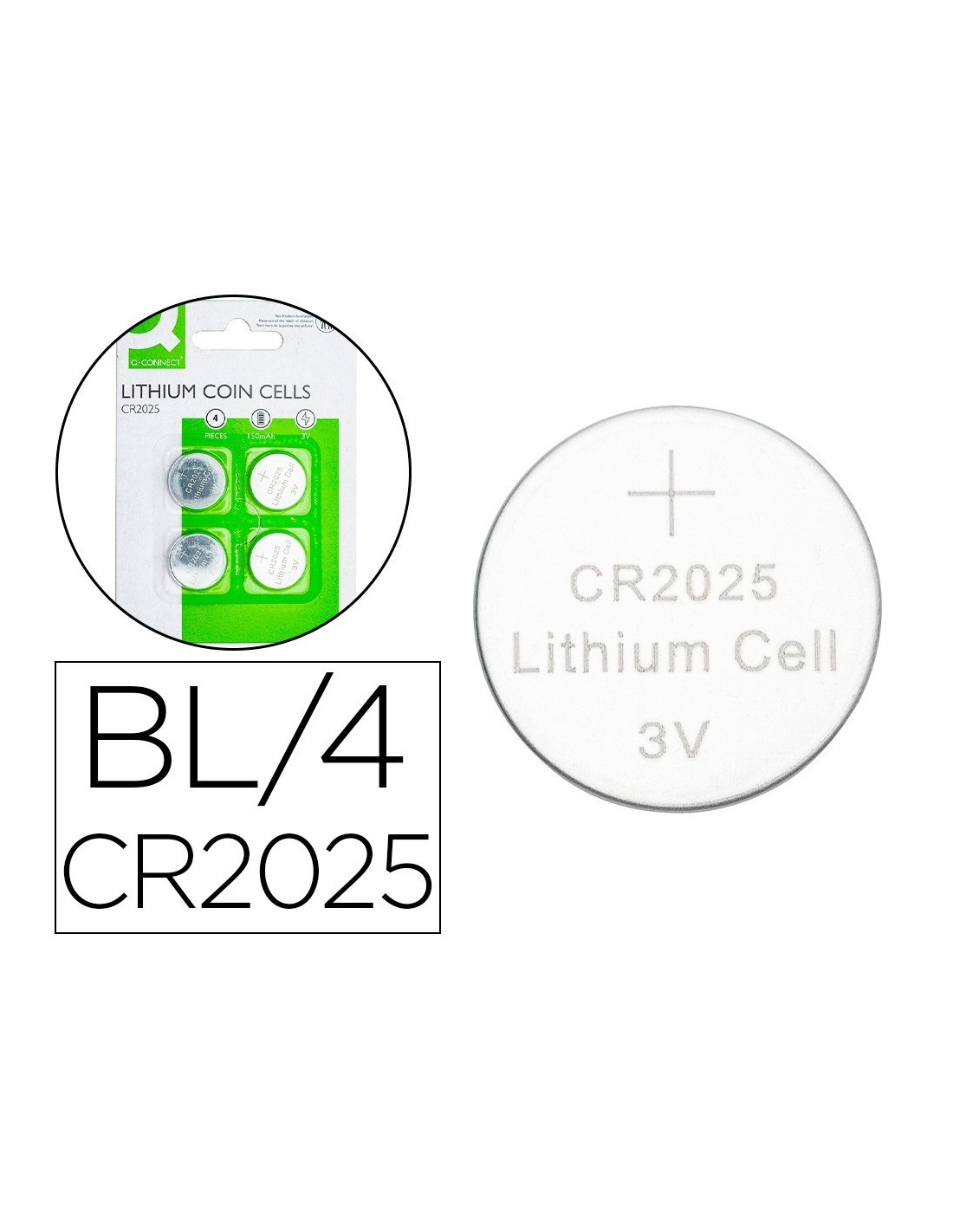 PILA Q-CONNECT TIPO BOTON LITIO CR2025 3V BLISTER DE 4 UNIDADES