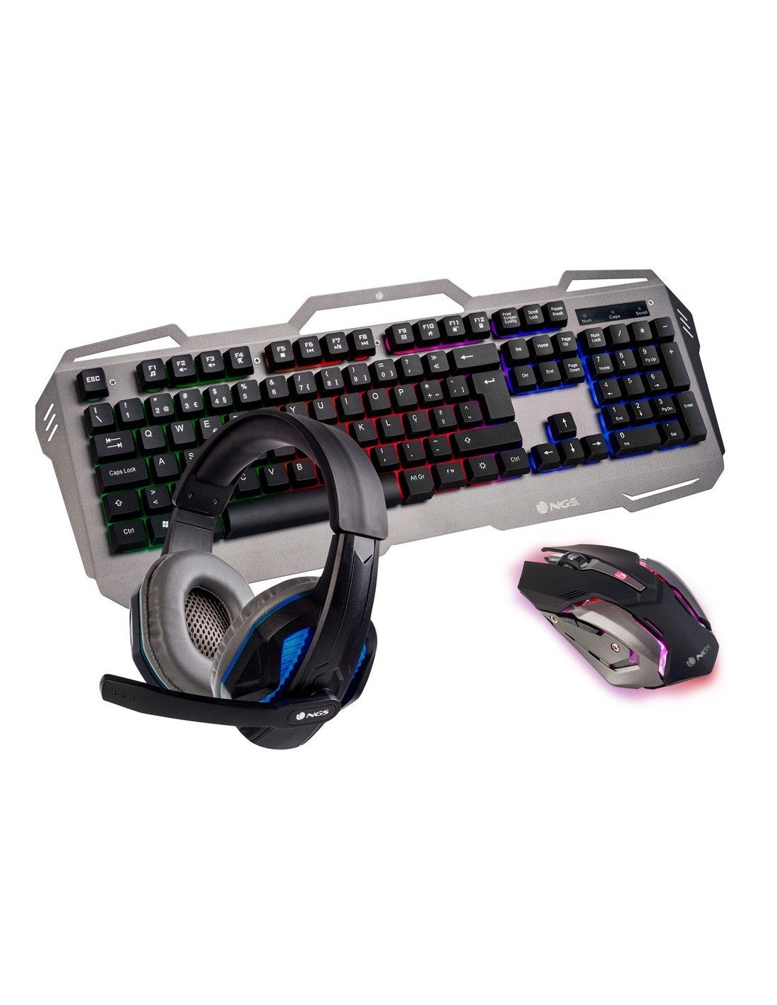 SET TECLADO Y RATON NGS PACK GAMING GBX-1500 CON AURICULAR ESTEREO Y MICROFONO ILUMINACION LED USB