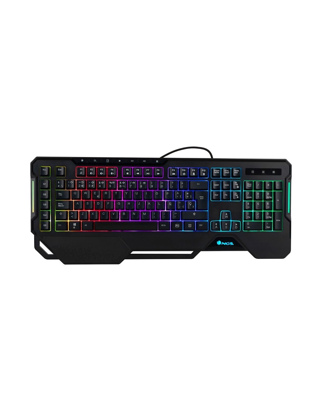 TECLADO NGS GAMING PROFESIONAL 104 TECLAS LUCES RGB CON REPOSAMUÑECAS CABLE 1,8 M COLOR NEGRO