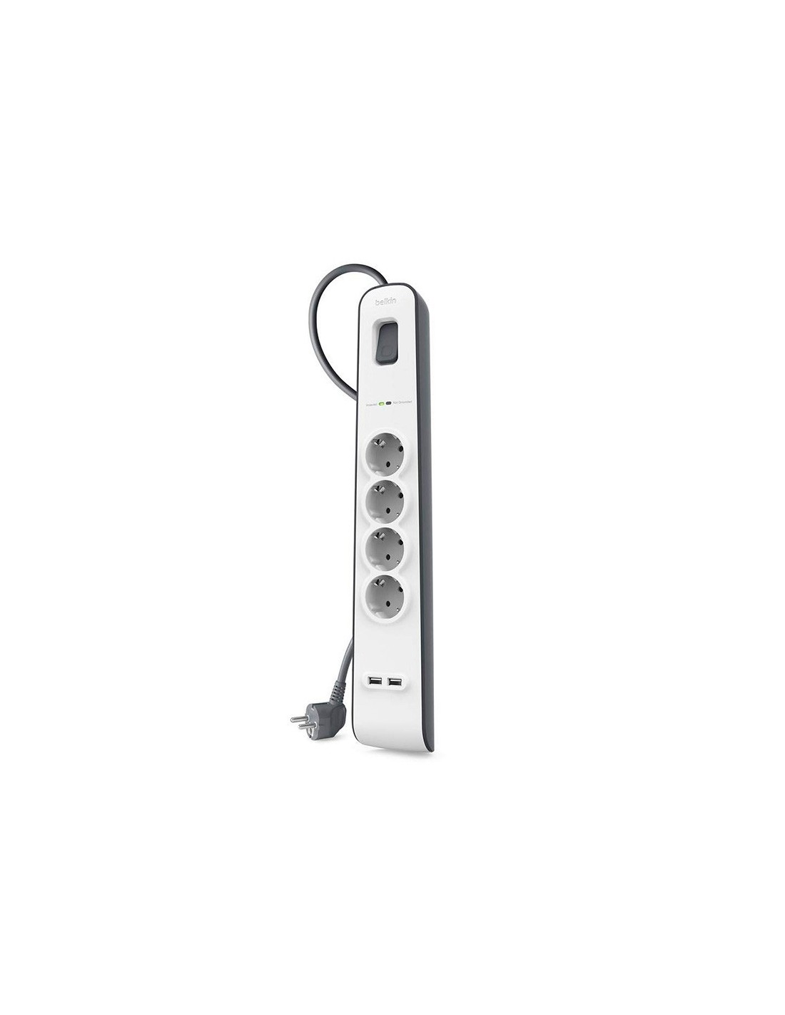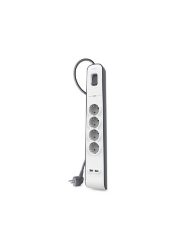 REGLETA BELKIN BSV401VF2M PROTECCION SOBRETENSION 4 TOMAS + 2 PUERTOS USB BOTON APAGADO Y ENCENDIDO COLOR