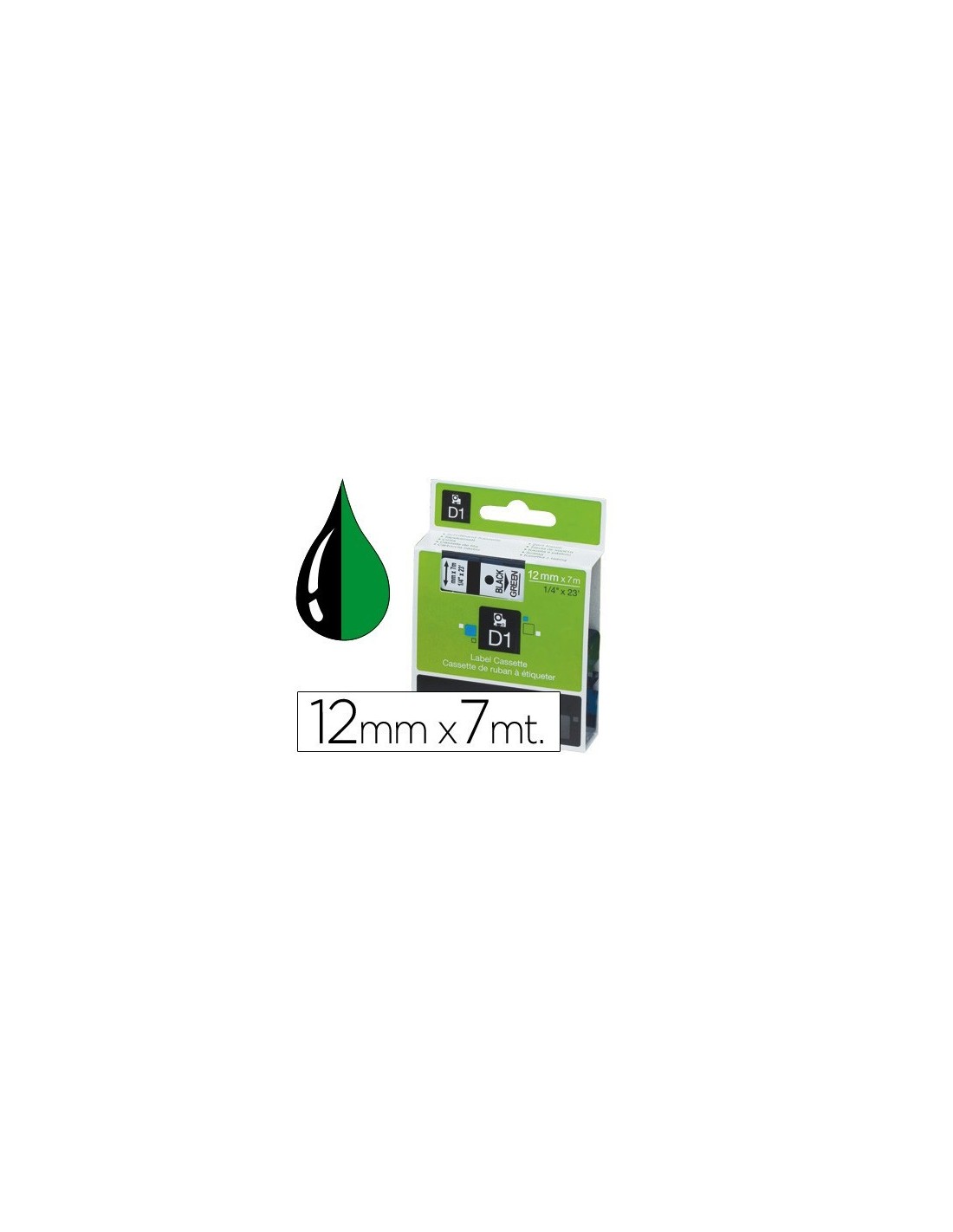 CINTA DYMO 1000 NEGRO-VERDE 12MM X 7MT D1 Ver en Cátalogo Pag 141.