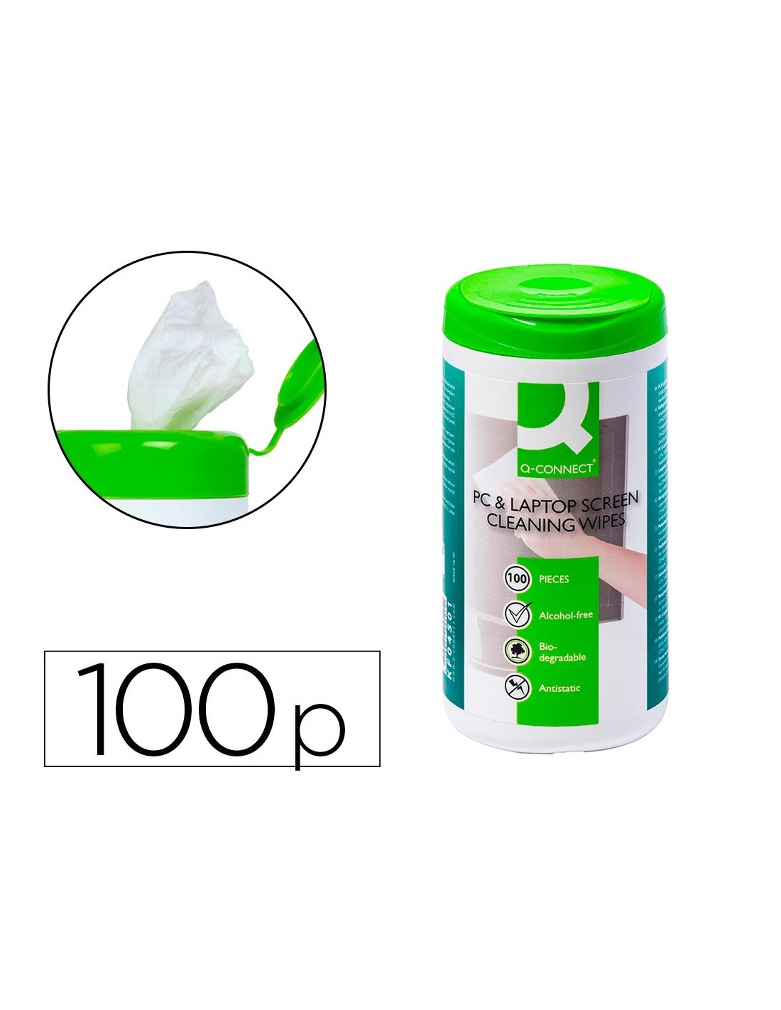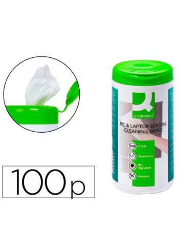 TOALLITAS Q-CONNECT LIMPIADORA DE PANTALLAS Y TECLADOS BOTE DE 100 UNIDADES