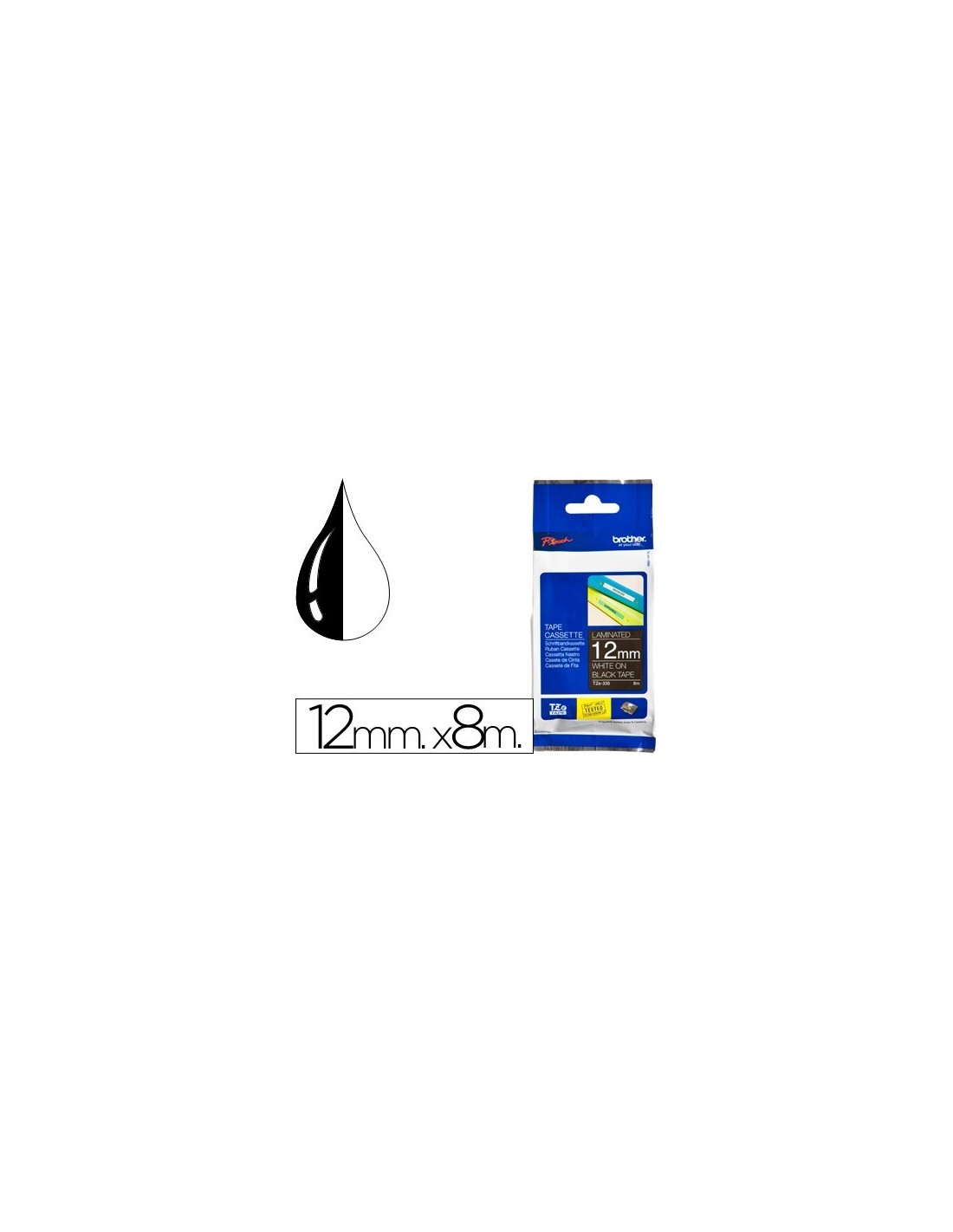 CINTA BROTHER TZE-335 NEGRO-BLANCO 12MM LONGITUD 8MTS