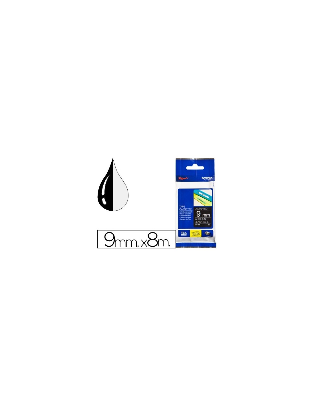 CINTA BROTHER TZE-325 NEGRO-BLANCO 9MM LONGITUD 8MT