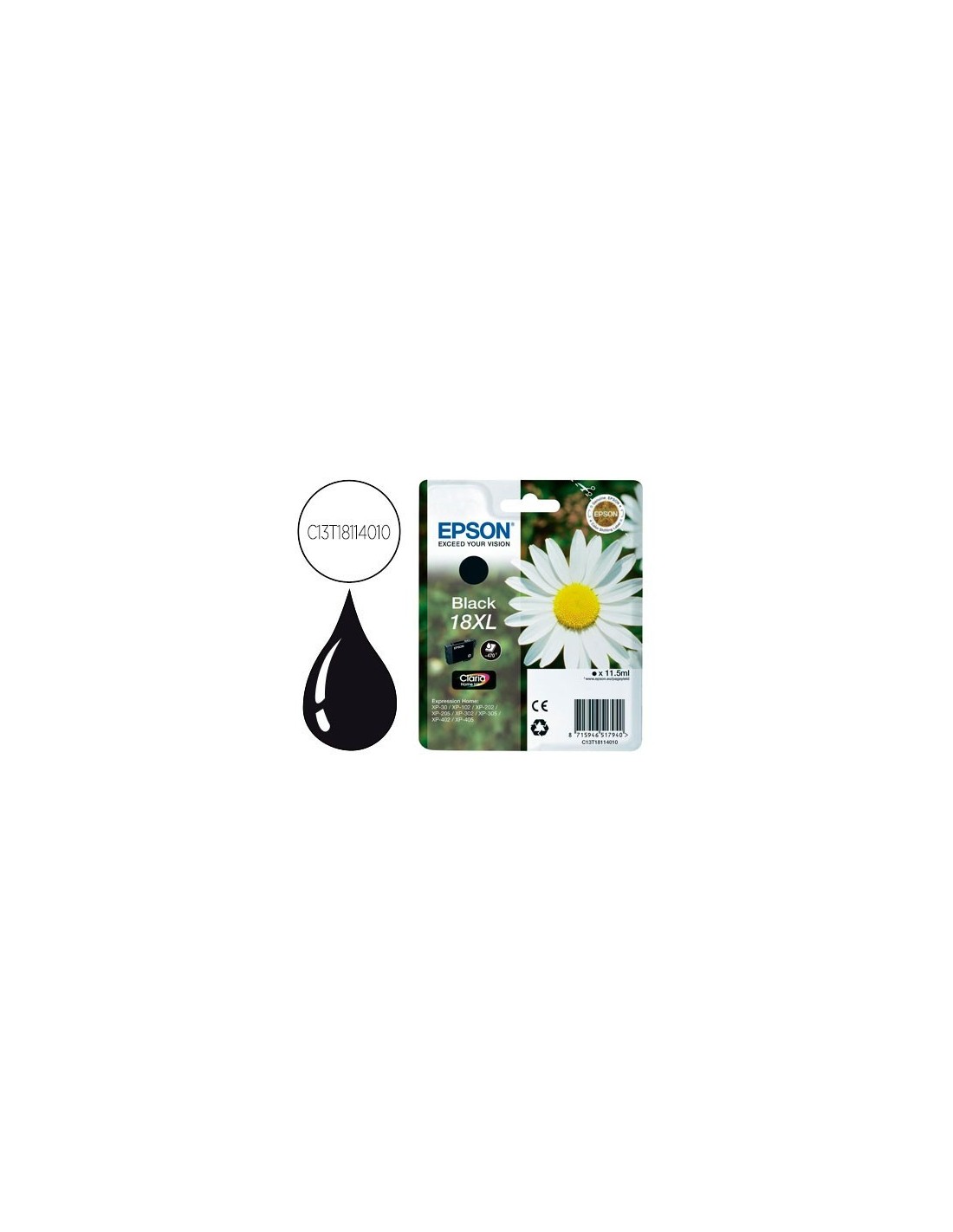 INK-JET EPSON T18XL NEGRO EXPRESSION HOME XP-102 XP-205 XP-305 XP-405 CAPACIDAD 470 PAG