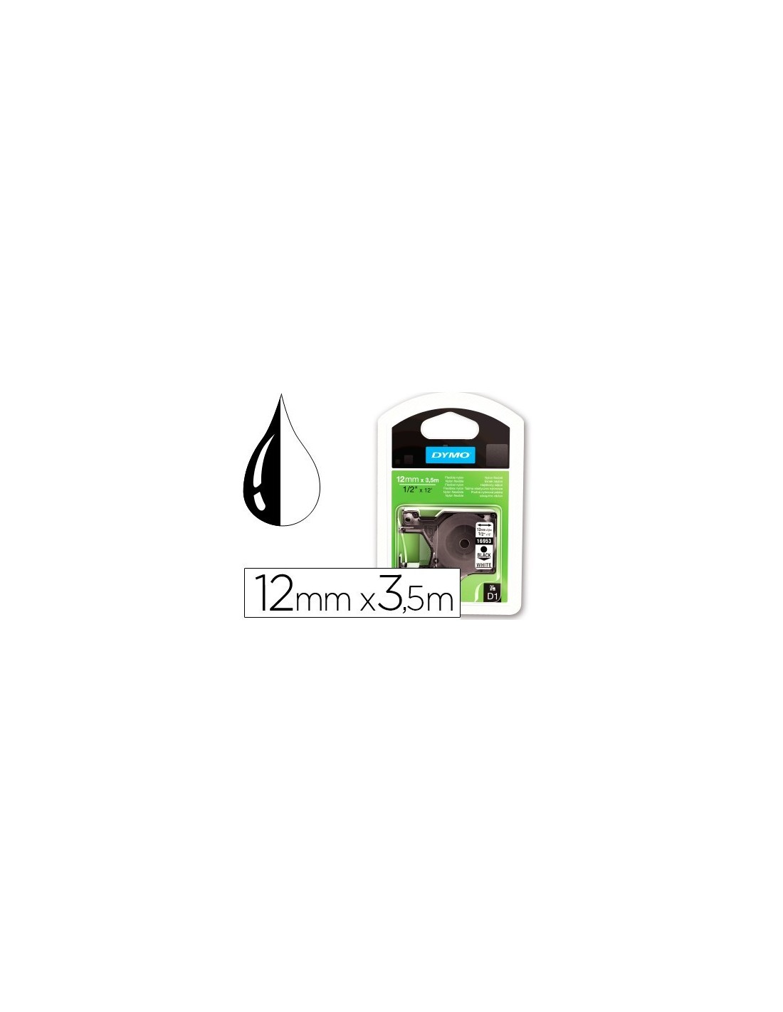 CINTA DYMO NEGRO BLANCO 12MM X3,5 MT D1 NYLON