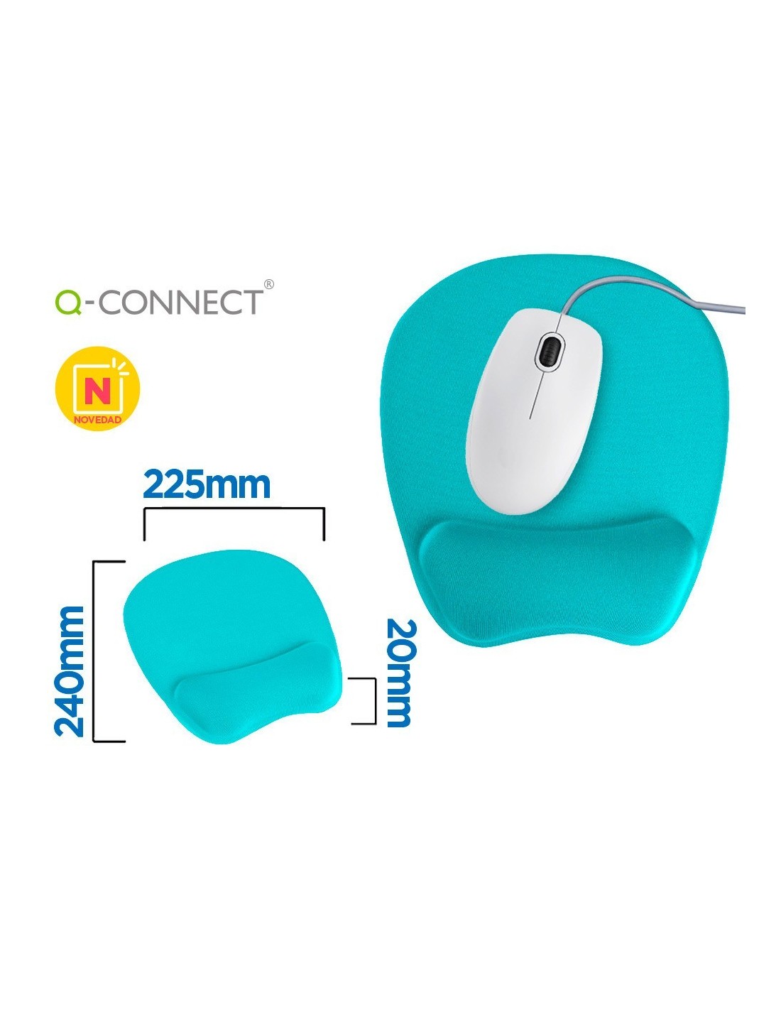 ALFOMBRILLA PARA RATON Q-CONNECT CON REPOSAMUÑECAS ERGONOMICA DE GEL COLOR TURQUESA 225X240X20 MM