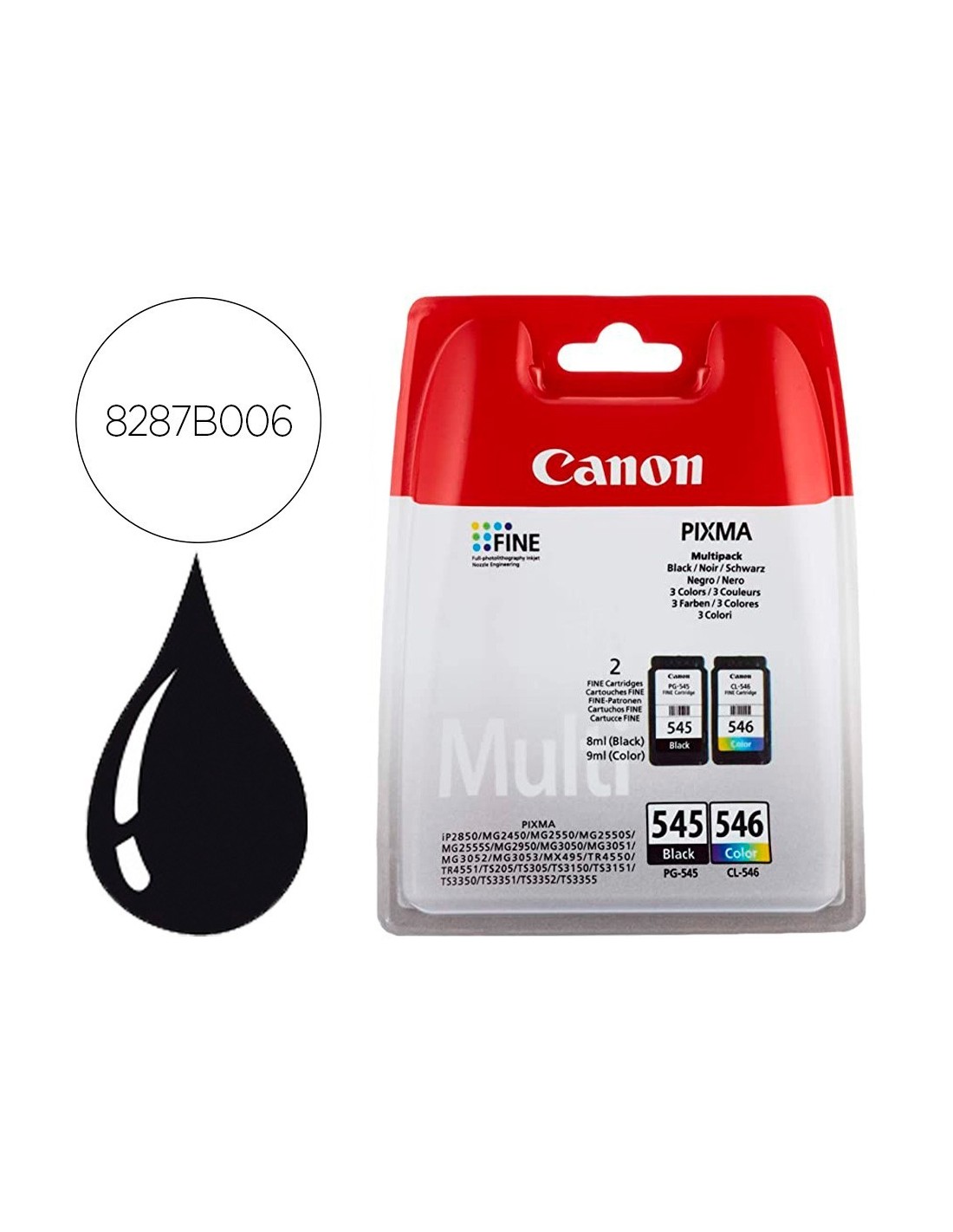INK-JET CANON PG-545 / CL-546 PIXMA MG2550 / MG3050 / TR4550/S205/S305/TS3352 PACK 2 COLORES NEGRO COLOR