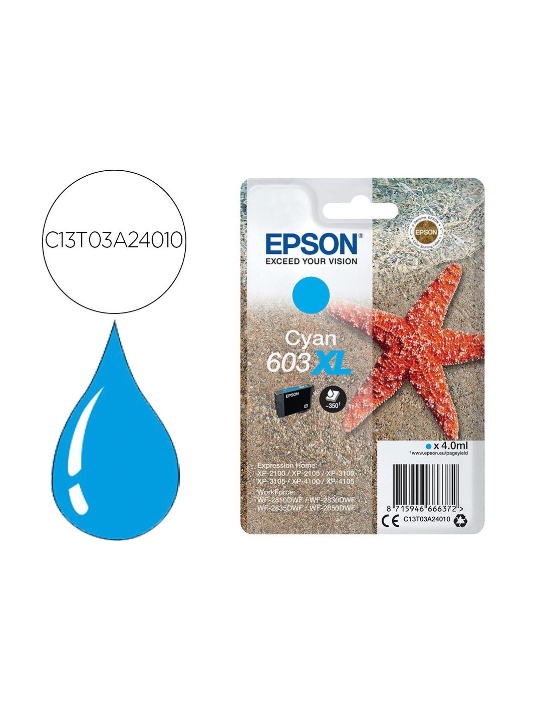 INK-JET EPSON 603XL XP-2100 / 2105 / 3100 / 4100 / WF-2810 / 2830 / 2835 / 2850 CIAN 350 PAGINAS
