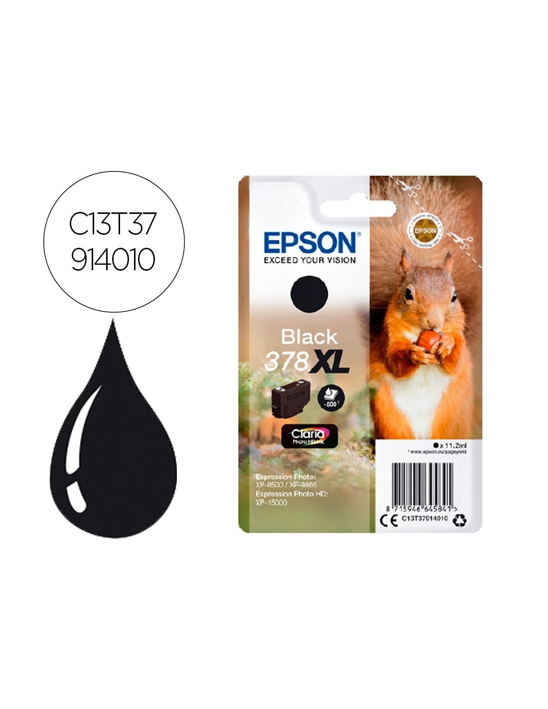INK-JET EPSON 378 XL EXPRESSION HOME XP-8605 / 8606 / XP-15000 / XP-8500 / 8505 NEGRO 500 PAG