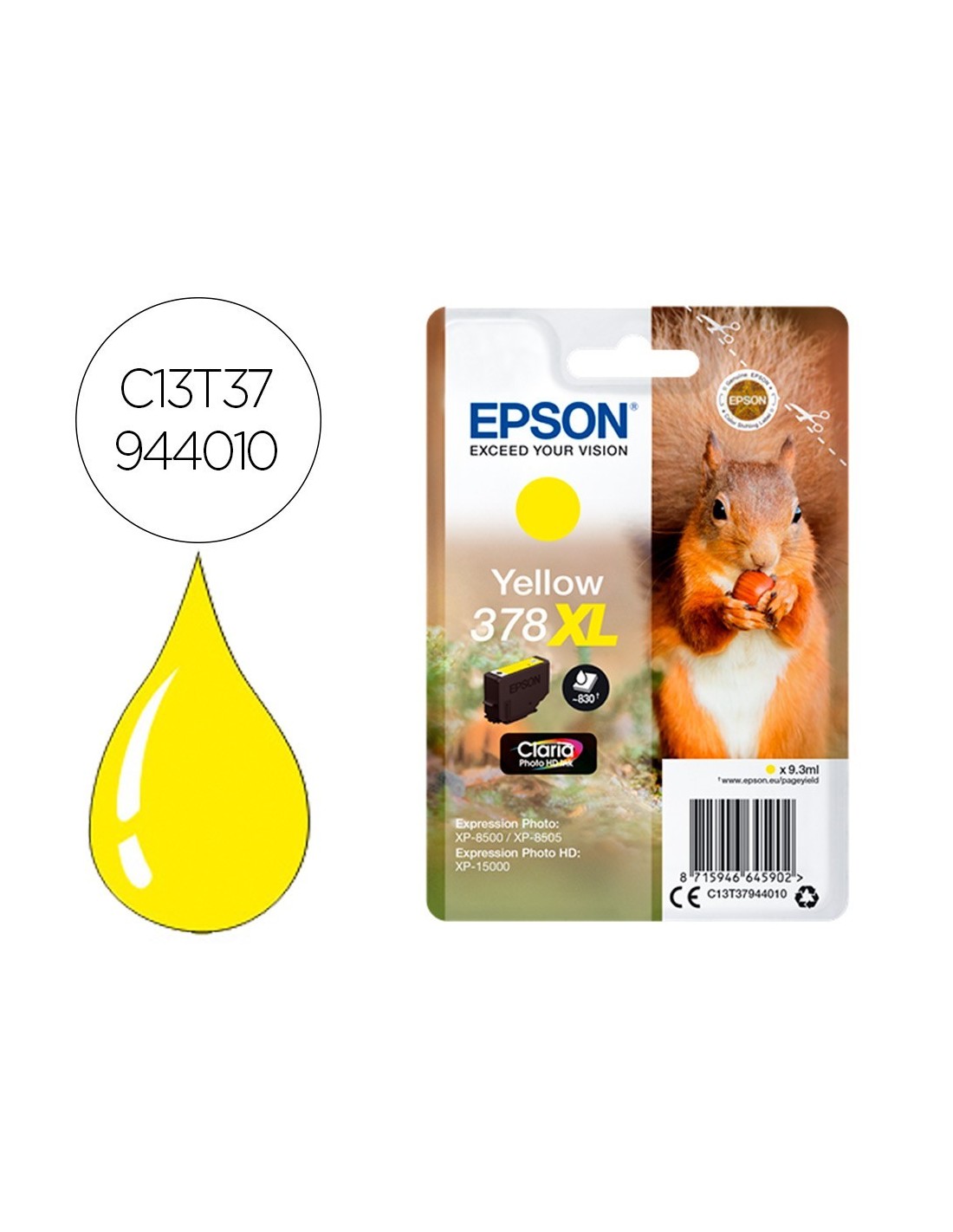 INK-JET EPSON 378 XL EXPRESSION HOME XP-8605 / 8606 / XP-15000 / XP-8500 / 8505 AMARILLO 830 PAG