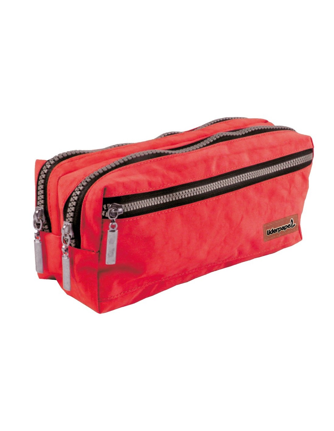 BOLSO ESCOLAR LIDERPAPEL PORTATODO RECTANGULAR 3 BOLSILLOS ROJO 210X80X85 MM