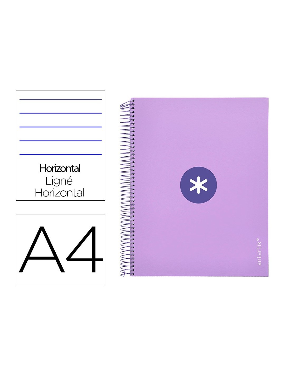 CUADERNO ESPIRAL LIDERPAPEL A4 MICRO ANTARTIK TAPA FORRADA 120H 100 GR HORIZONTAL 5 BANDA4 TALADROS COLOR LAVANDA