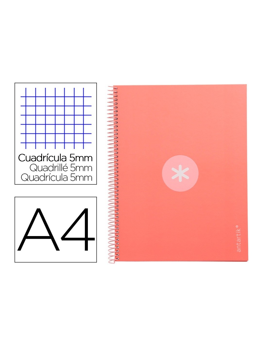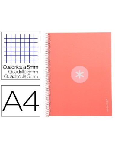 CUADERNO ESPIRAL LIDERPAPEL A4 MICRO ANTARTIK TAPA FORRADA 80H 90 GR CUADRO 5MM 1 BANDA 4 TALADROS ROSA CLARO