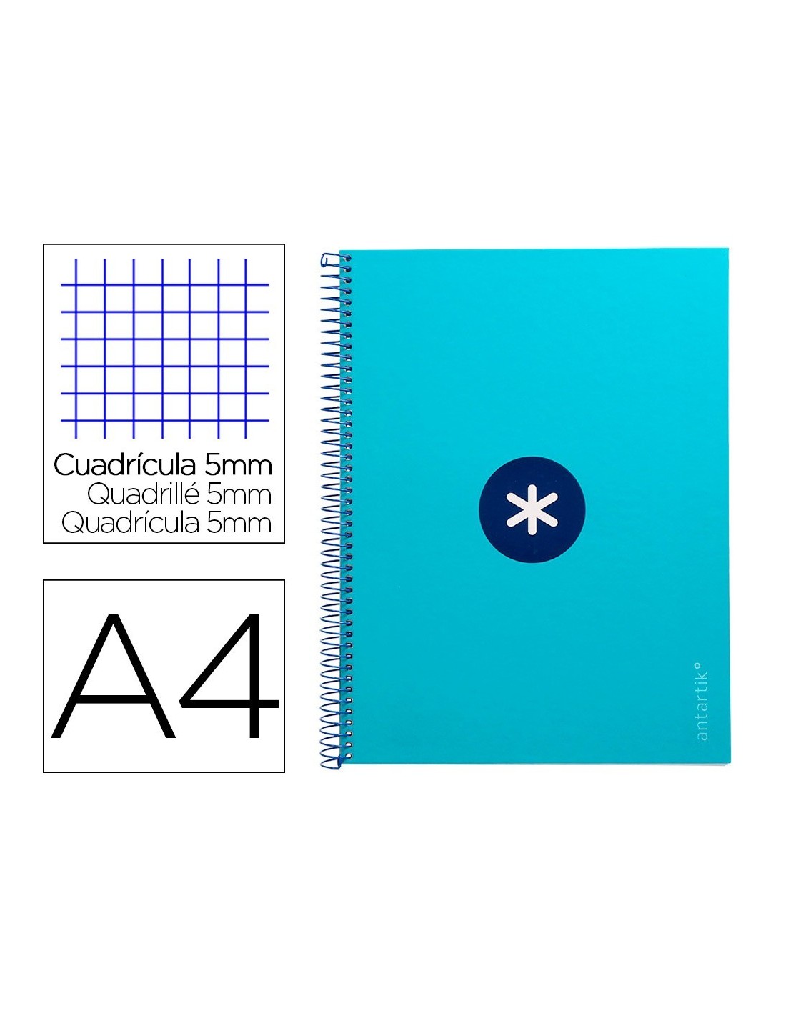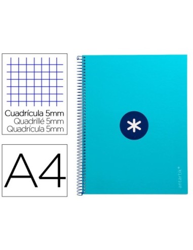 CUADERNO ESPIRAL LIDERPAPEL A4 MICRO ANTARTIK TAPA FORRADA 80H 90 GR CUADRO 5MM 1 BANDA 4 TALADROS TURQUESA