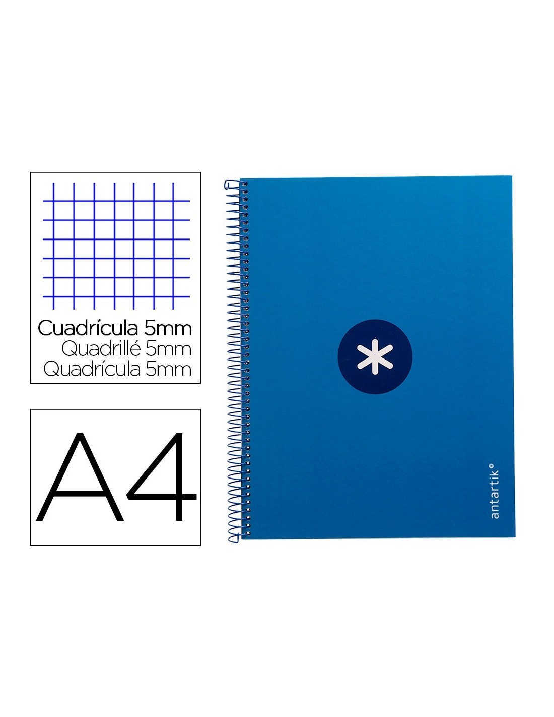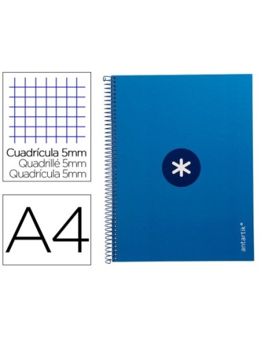 CUADERNO ESPIRAL LIDERPAPEL A4 MICRO ANTARTIK TAPA FORRADA 80H 90 GR CUADRO 5MM 1 BANDA 4 TALADROS AZUL OSCURO