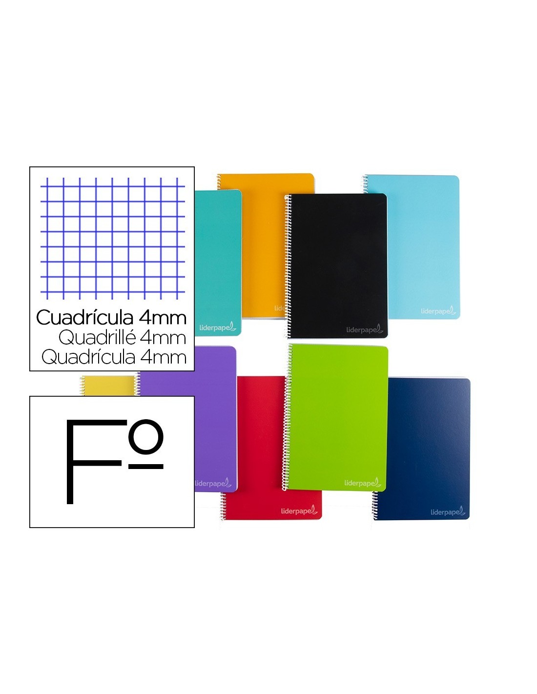 CUADERNO ESPIRAL LIDERPAPEL FOLIO WITTY TAPA DURA 140 H 75GR CUADRO 4MM CON MARGEN COLORES SURTIDOS
