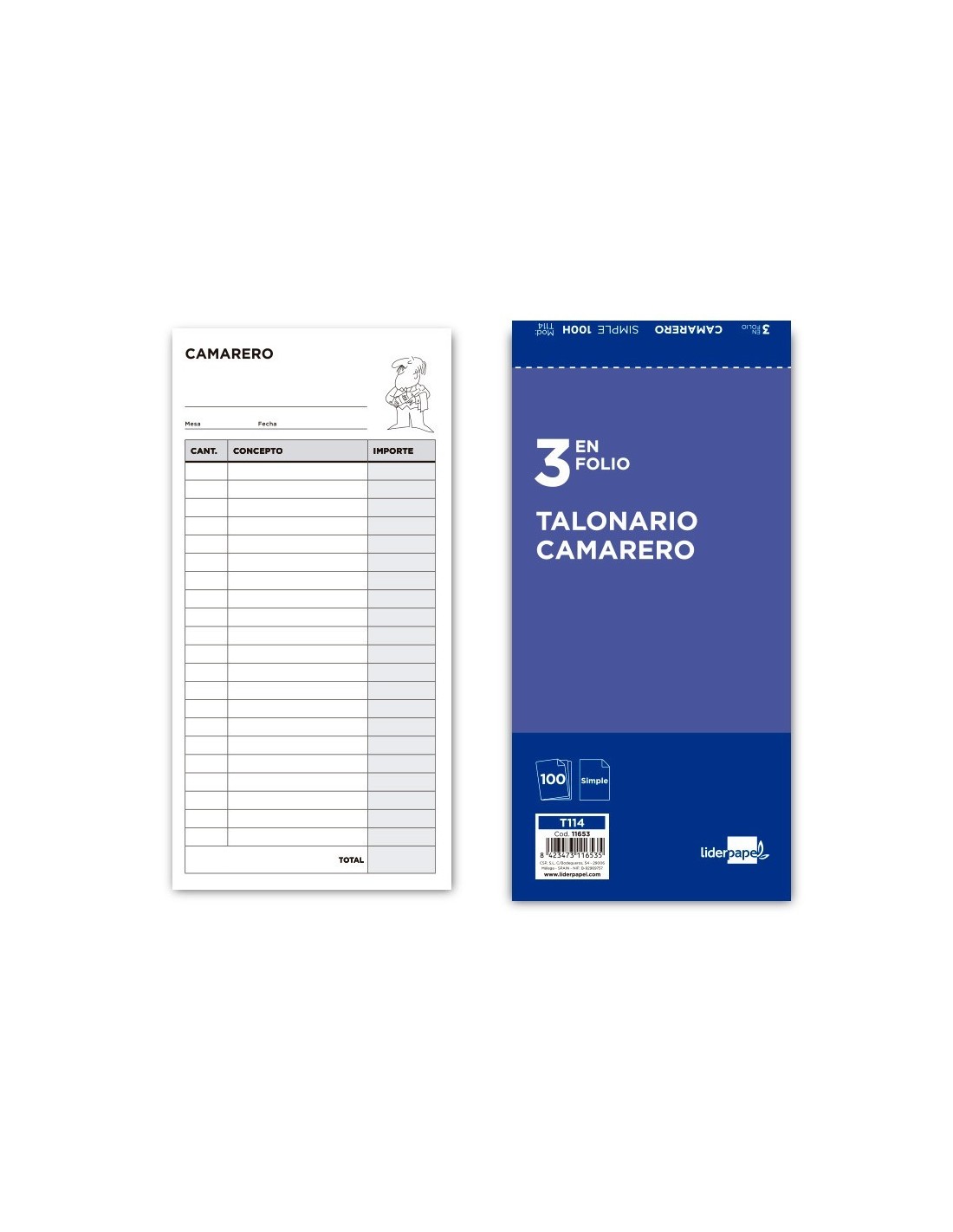 TALONARIO LIDERPAPEL CAMARERO 3/F. ORIGINAL T114