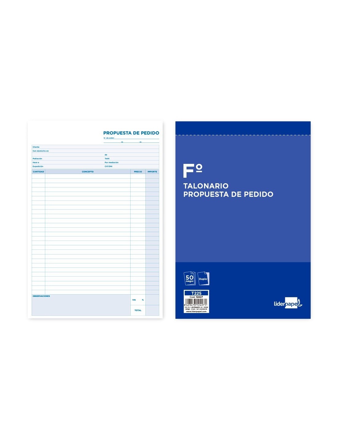 TALONARIO LIDERPAPEL PEDIDOS FOLIO ORIGINAL Y COPIA T225