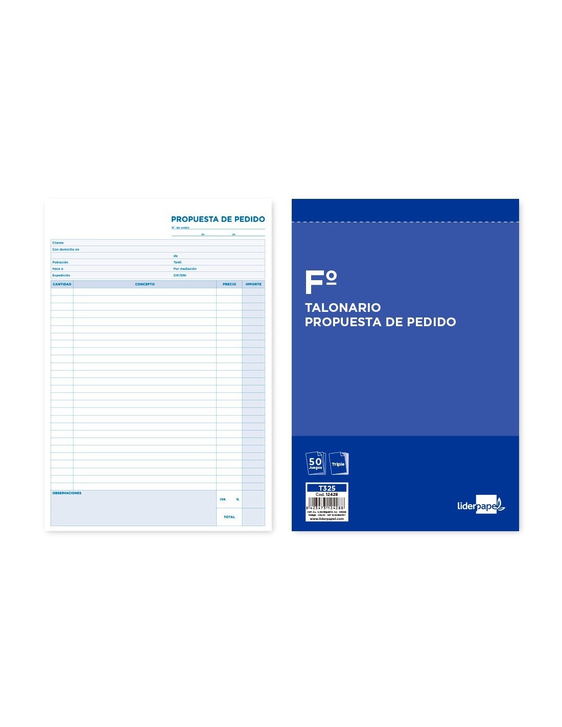 TALONARIO LIDERPAPEL PEDIDOS FOLIO ORIGINAL Y 2 COPIAS T325