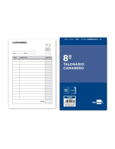 TALONARIO LIDERPAPEL CAMARERO 8. ORIGINAL Y 2 COPIAS T302