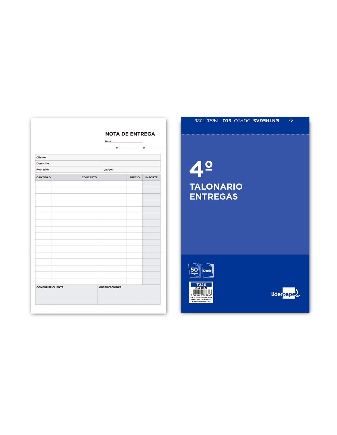TALONARIO LIDERPAPEL ENTREGAS CUARTO ORIGINAL Y COPIA T226