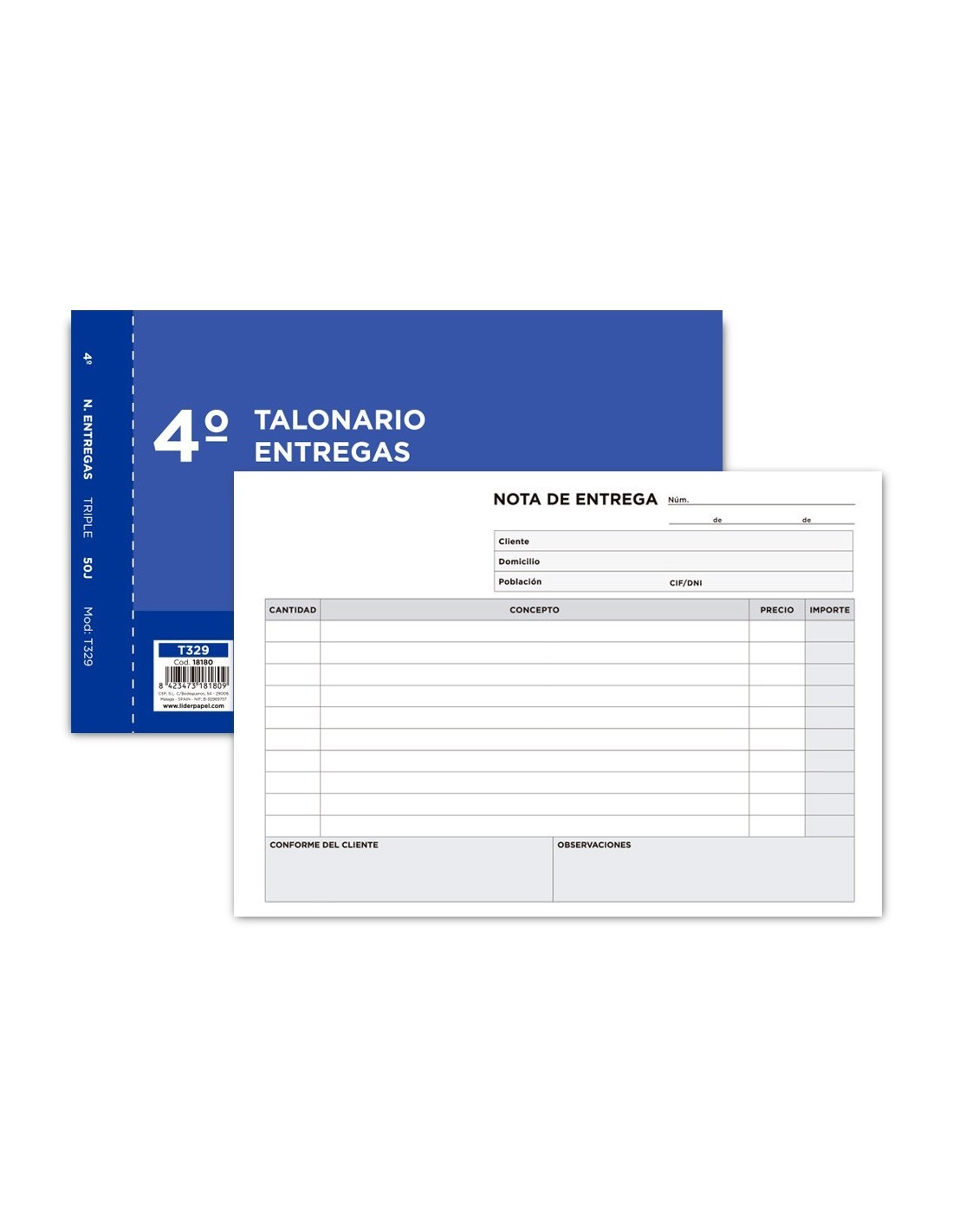TALONARIO LIDERPAPEL ENTREGAS CUARTO ORIGINAL Y 2 COPIAS T329 APAISADO