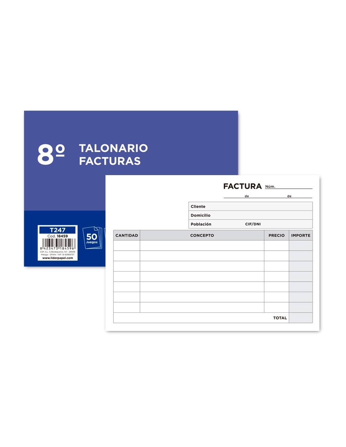 TALONARIO LIDERPAPEL FACTURAS 8. ORIGINAL Y COPIA T247 APAISADO SIN I.V.A