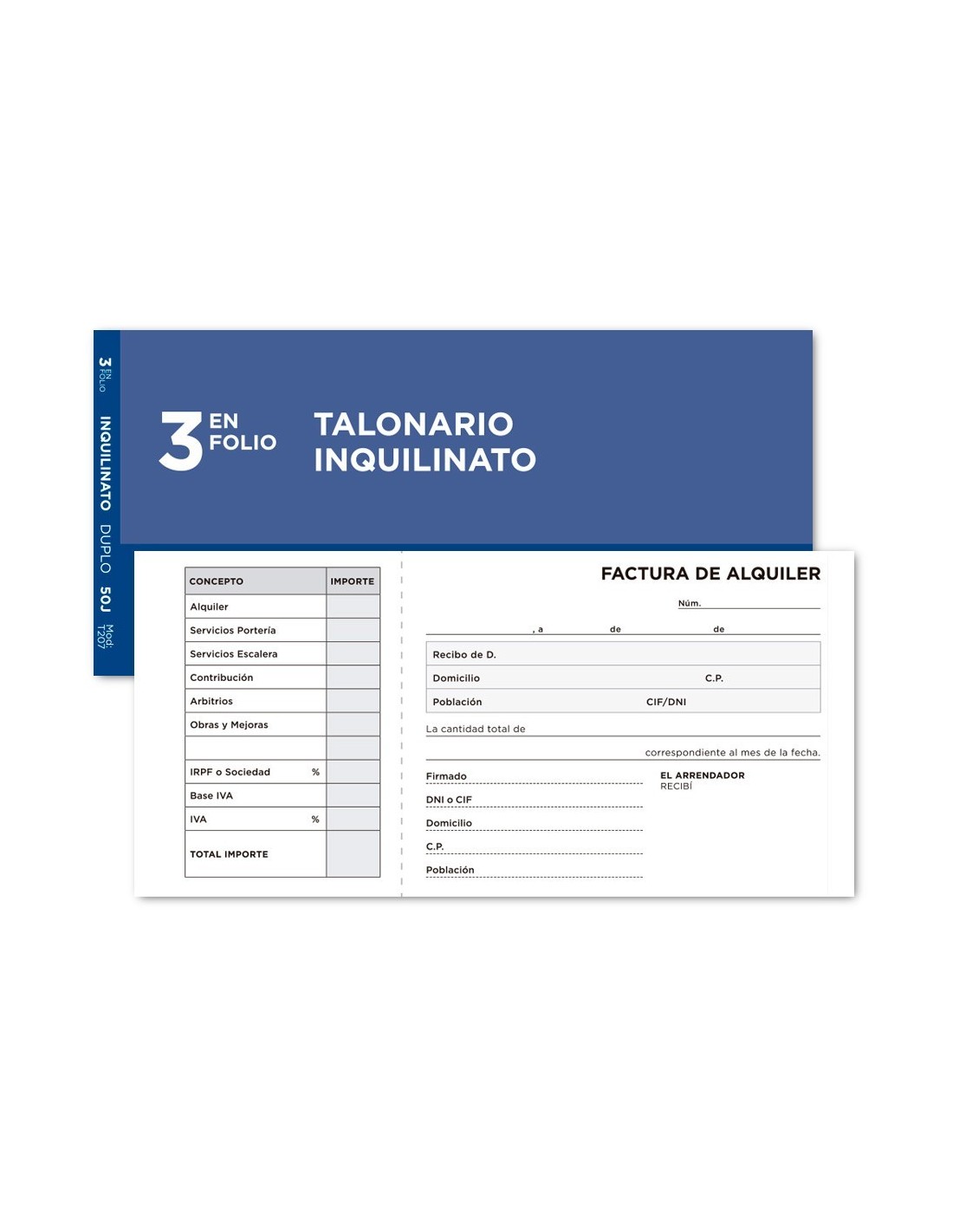 TALONARIO LIDERPAPEL INQUILINATO 3/F. ORIGINAL Y COPIA T207 CON CODICIONES E I.V.A.