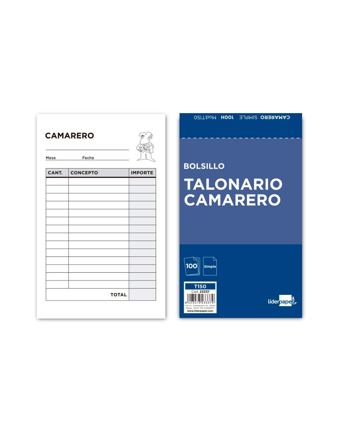 TALONARIO LIDERPAPEL CAMARERO BOLSILLO ORIGINAL T150