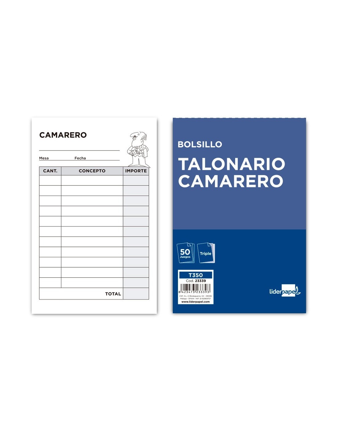 TALONARIO LIDERPAPEL CAMARERO BOLSILLO ORIGINAL Y 2 COPIAS T350