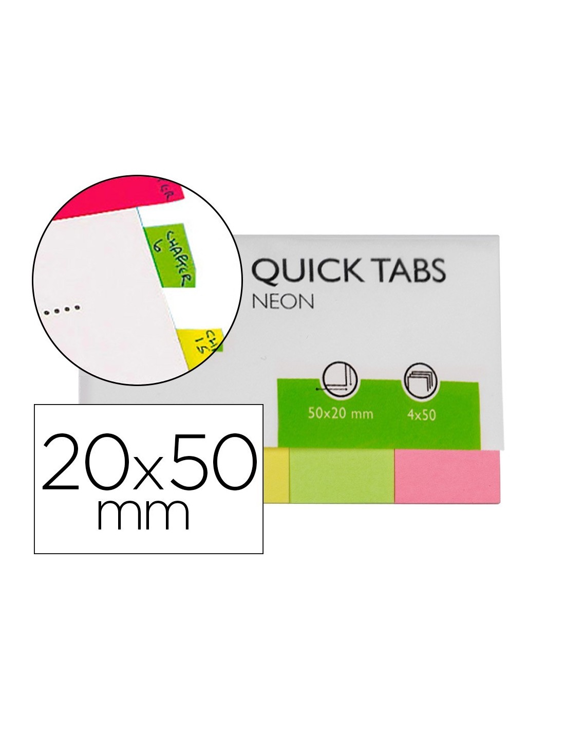 BANDERITAS SEPARADORAS Q-CONNECT 20X50 MM FLUORESCENTE PACK DE 4 CON 50 HOJAS