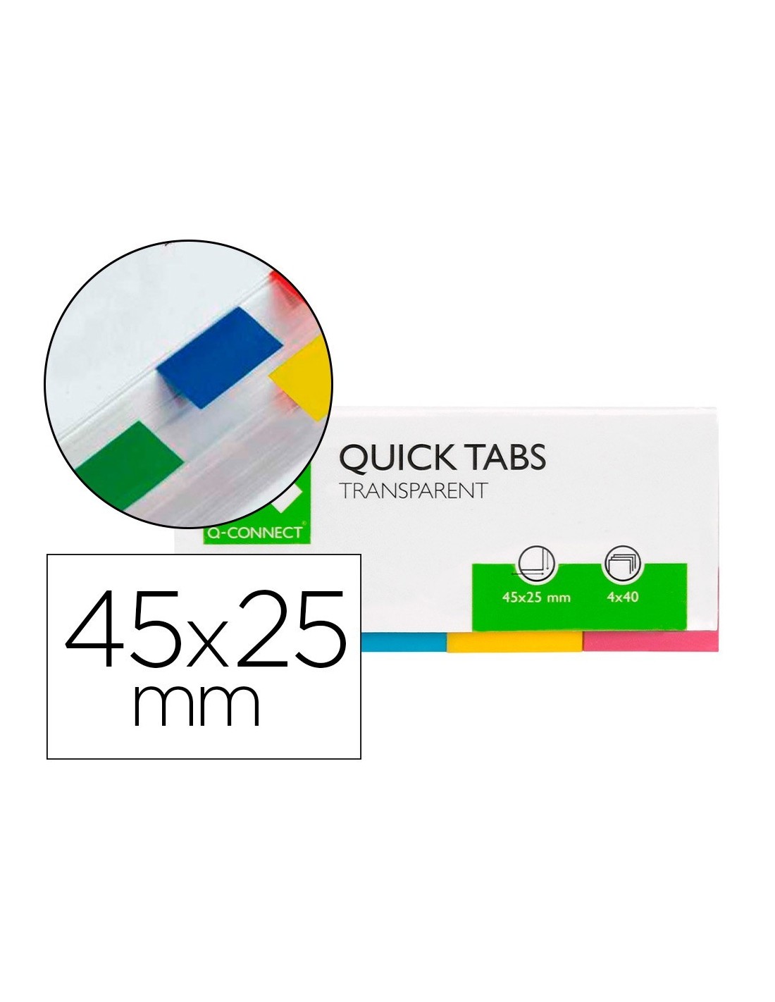 BANDERITAS SEPARADORAS Q-CONNECT 25X45 MM TRANSPARENTES Y COLOR PACK DE 4 CON 40 HOJAS
