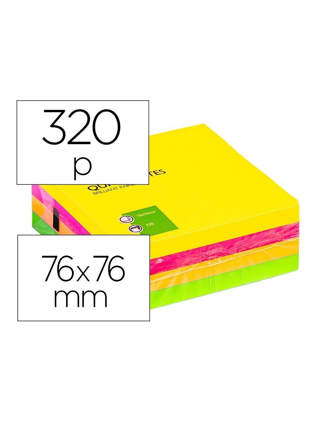 BLOC DE NOTAS ADHESIVAS QUITA Y PON Q-CONNECT 76X76 MM FLUORESCENTE CON 320 HOJAS