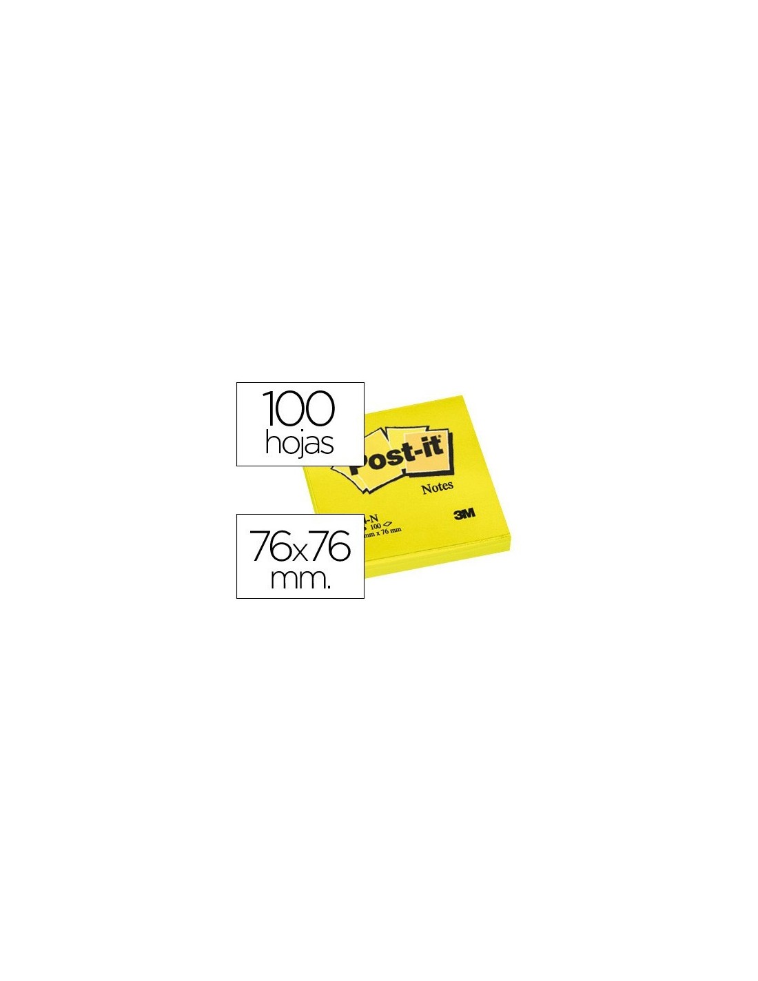 BLOC DE NOTAS ADHESIVAS QUITA Y PON POST-IT 76X76 MM AMARILLO NEON CON 100 HOJAS
