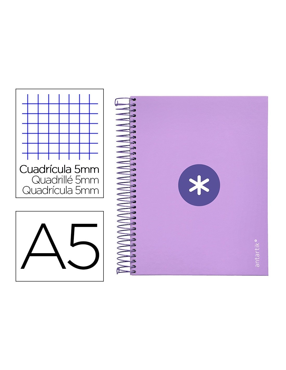 CUADERNO ESPIRAL LIDERPAPEL A5 MICRO ANTARTIK TAPA FORRADA120H 100 GR CUADRO 5MM 5 BANDA6 TALADROS COLOR LAVANDA
