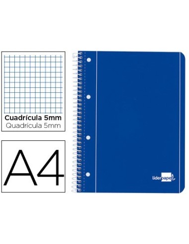 CUADERNO ESPIRAL LIDERPAPEL A4 MICRO SERIE AZUL TAPA BLANDA 80H 80 GR CUADRO5MM CON MARGEN 4 TALADROS AZUL