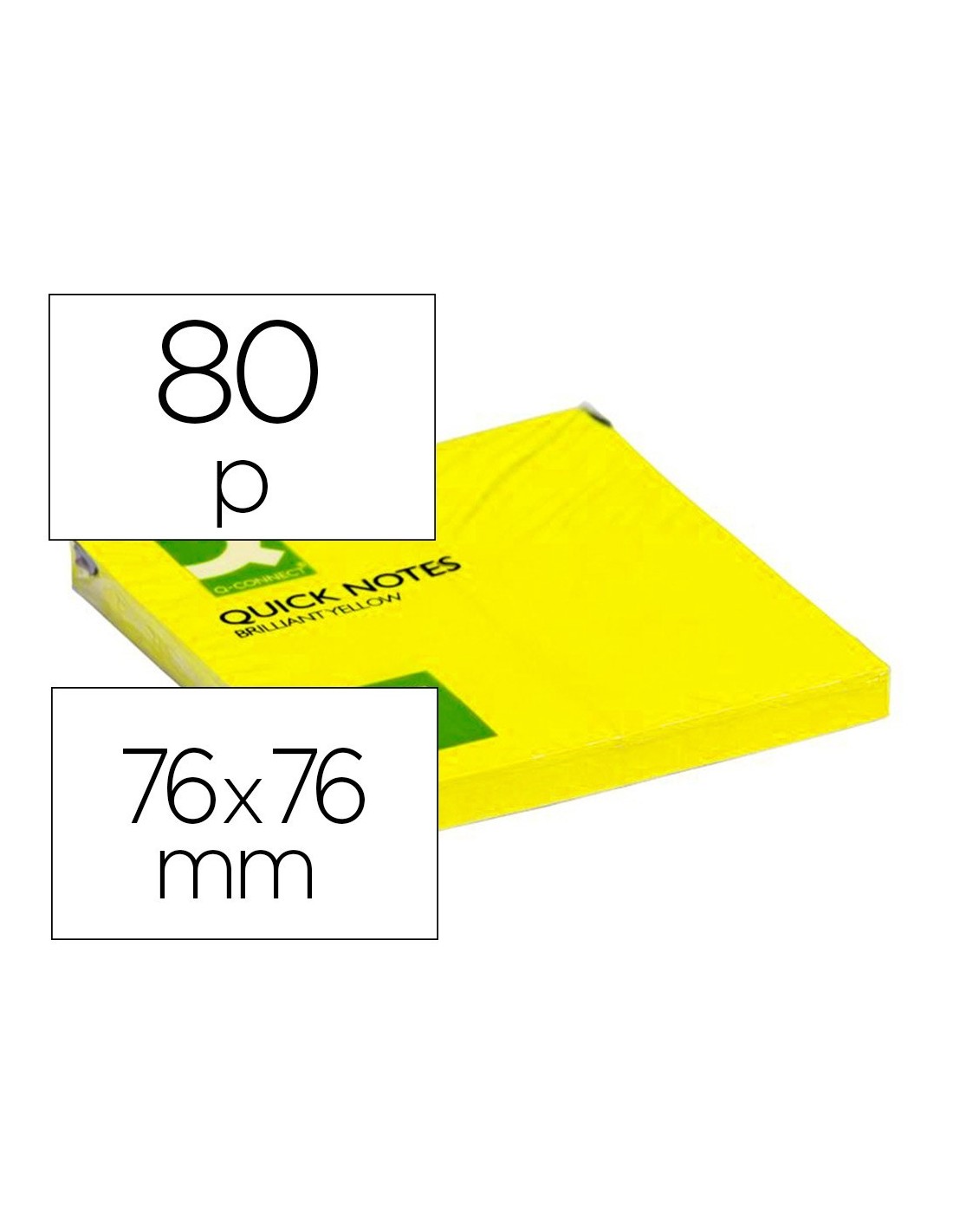 BLOC DE NOTAS ADHESIVAS QUITA Y PON Q-CONNECT 76X76 MM AMARILLO NEON 80 HOJAS