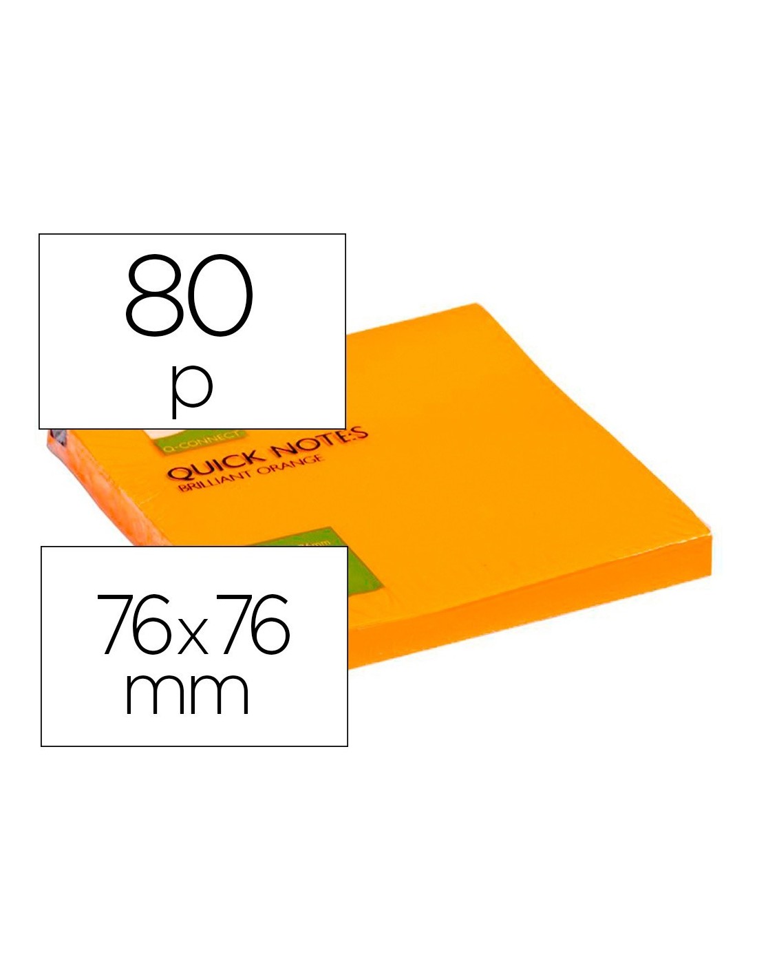 BLOC DE NOTAS ADHESIVAS QUITA Y PON Q-CONNECT 76X76 MM NARANJA NEON 80 HOJAS